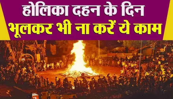 होलिका दहन के दिन भूल से भी किसी को उधार नहीं दें। ज्योतिष शास्त्र में बताया गया है कि जो भी इस दिन उधार देता है उसके घर में आने वाली बरकत रुक जाती है। होलिका दहन की पूजा करते समय काले और सफेद रंग के वस्त्र धारण न करें।पूजा के समय इन रंगों को पहनना अशुभ बताया गया है। होलिका दहन की पूजा में महिलाएं भूलकर भी बाल नहीं बांधें। खुले बालों से होलिका की पूजा करें। होलिका दहन की रात को सड़क पर पड़ी चीज को हाथ या पैर लगाएं। इस दिन टोटके का खतरा ज्यादा होता है। नवविवाहिता ससुराल में पहली होली पर होलिका दहन की आग न देखे। ये अशुभ माना गया है।