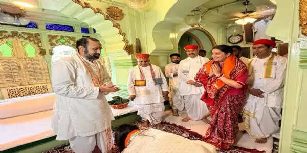 नाथद्वारा में स्मृति ईरानी व एकता कपूर ने किए श्रीनाथजी के दर्शन