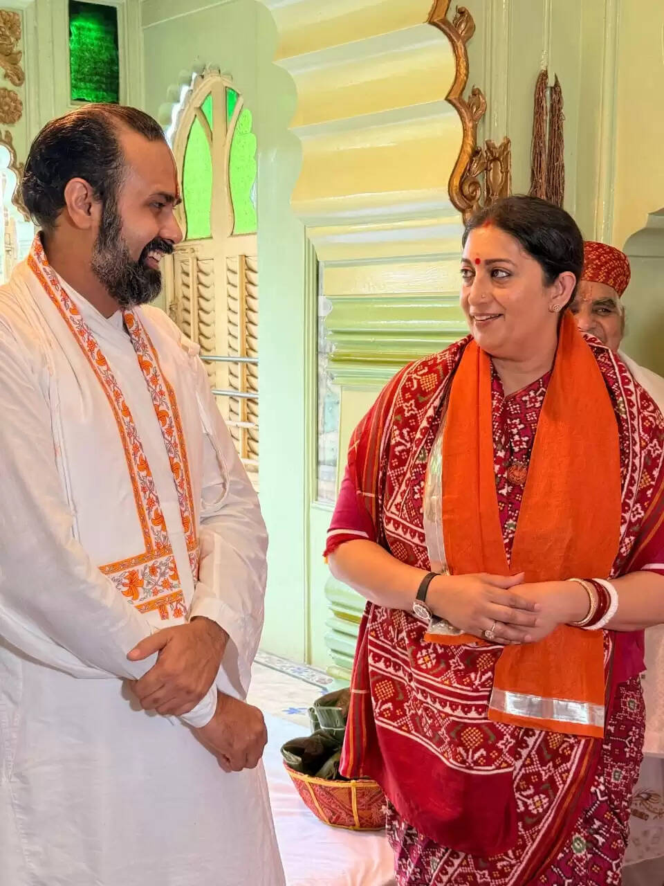 पूर्व केंद्रीय मानव संसाधन मंत्री व चर्चित टीवी कलाकार स्मृति ईरानी तथा फिल्म निर्देशिका एकता कपूर ने रविवार को श्रीनाथजी मंदिर में प्रभु श्रीजी की उत्थापन झांकी के दर्शन किए। दर्शन के पश्चात दोनों ने तिलकायत विशाल बावा से आशीर्वाद लिया। विशाल बावा ने पारंपरिक रीति से उन्हें रजाई व उपरणा ओढ़ाकर तथा प्रसाद प्रदान कर समाधान किया। इस दौरान जिला कलेक्टर अरुण कुमार हसीजा, श्रीकृष्ण भंडार के अधिकारी सुधाकर उपाध्याय एवं सहायक अधिकारी अनिल भी मौजूद रहे। स्मृति ईरानी व एकता कपूर ने मंदिर की व्यवस्था व दर्शन प्रक्रिया की सराहना की तथा प्रभु श्रीनाथजी से राष्ट्र कल्याण एवं जनसुख-समृद्धि की कामना की।