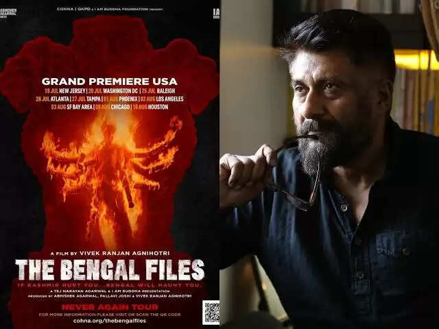 विवेक अग्निहोत्री अपनी बहुप्रतीक्षित फिल्म 'द बंगाल फाइल्स' के साथ एक बार फिर दर्शकों के सामने आने को तैयार हैं। इस फिल्म का भव्य प्रीमियर अमेरिका के विभिन्न शहरों में होने जा रही है। यह फिल्म 19 जुलाई को न्यू जर्सी में, 20 जुलाई को वाशिंगटन डीसी में, 25 जुलाई को रैले में, 26 जुलाई को अटलांटा में, 27 जुलाई को टैम्पा में, 1 अगस्त को फीनिक्स में, 2 अगस्त को लॉस एंजिल्स में, 3 अगस्त को एसएफ बे एरिया में, 9 अगस्त को शिकागो और 10 अगस्त को ह्यूस्टन में दिखाई जाएगी।