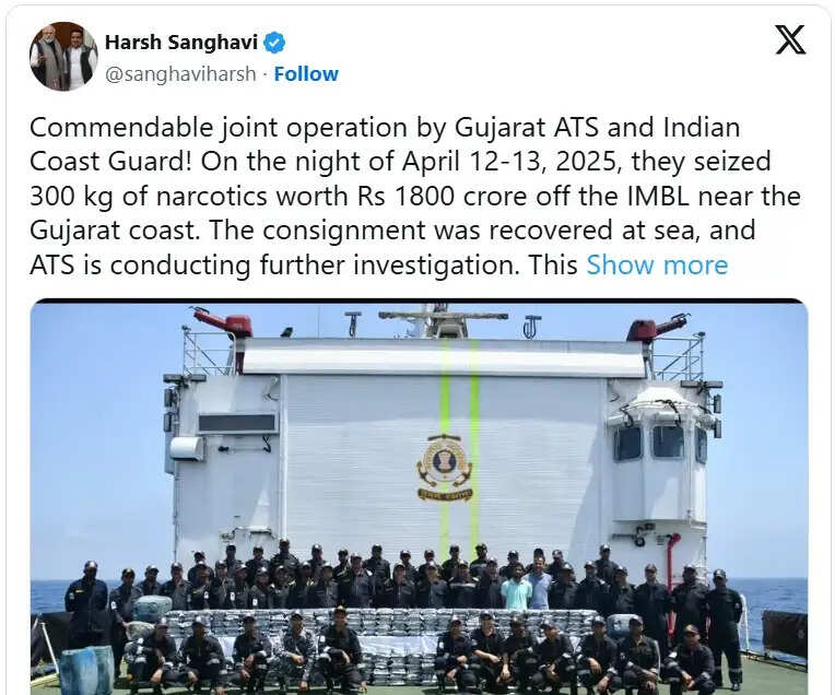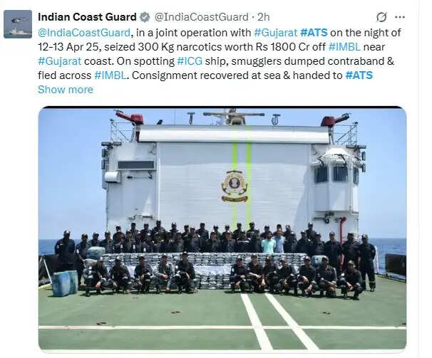पोरबंदर के पास समुद्र से 1800 करोड़ रुपये का 300 किलोग्राम ड्रग्स जब्त