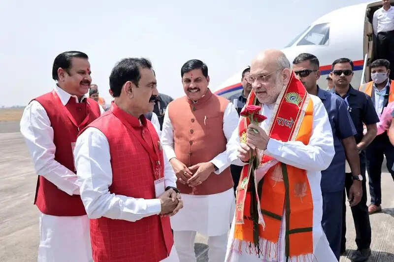 केन्द्रीय गृह मंत्री शाह भोपाल पहुंचे, मुख्यमंत्री ने किया स्वागत