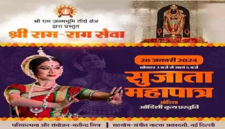श्रीराम जन्मभूमि मंदिर में श्री राम लला राग सेवा प्रतिदिन सायंकाल 3बजे से 5 बजे के मध्य गुंजायमान हो रहा है। श्रीराम जन्मभूमि मंदिर में श्री राम राग सेवा में आज सुजाता महापात्र ने ओडिशी नृत्य का प्रभु के समक्ष अपनी प्रस्तुति अर्पित किया। उन्होंने अपने टीम के साथ शास्त्रीय परंपरा के अनुरूप राग सेवा दी।