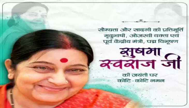 उल्लेखनीय है कि 14 फरवरी 1952 को जन्मीं प्रमुख भाजपा नेत्री सुषमा स्वराज का जब निधन हुआ तो वह विदेशमंत्री थीं। साल 2019 में दिल का दौरा पड़ने से उनकी मृत्यु हो गई। वह ऐसी नेता थीं, जो अपनी दरियादिली और सहानुभूति के लिए जानी जाती थीं।