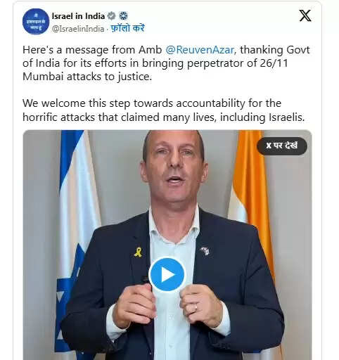 भारत में इजराइल के राजदूत रियूवेन अज़ार ने बयान जारी कर कहा, मैं आतंकवादियों को न्याय के कटघरे में लाने के लिए भारत सरकार की दृढ़ता के लिए धन्यवाद देना चाहता हूं। हम उन भयानक हमलों के लिए जवाबदेही की दिशा में उठाए गए इस कदम का स्वागत करते हैं, जिनमें इजराइलियों सहित कई लोगों की जान चली गई थी।
