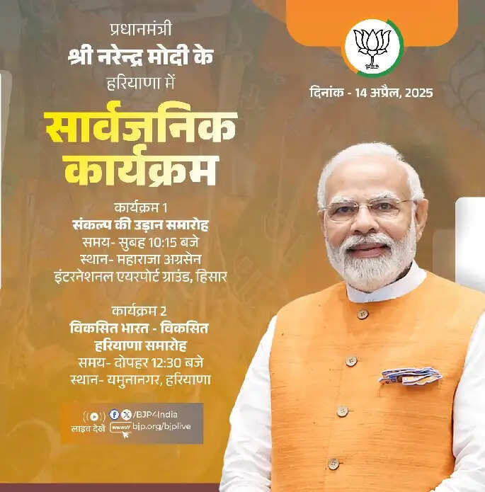 प्रधानमंत्री मोदी आज आंबेडकर जयंती पर हिसार से अयोध्या की वाणिज्यिक उड़ान की शुरुआत करेंगे, यमुनानगर भी जाएंगे