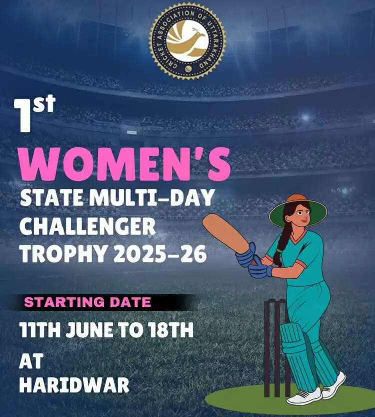 हरिद्वार, 10 जून (हि.स.)। क्रिकेट एसोसिएशन ऑफ उत्तराखंड (सीएयू) महिला क्रिकेट को एक नया मुकाम देने की दिशा में बुधवार से वूमेन'स स्टेट मल्टी डे चैलेंजर्स ट्रॉफी 2025-26 का आगाज होगा। यह पहली बार होगा जब उत्तराखंड में मल्टी डे फॉर्मेट में महिला क्रिकेट टूर्नामेंट का आयोजन किया जा रहा है। यह प्रतिष्ठित आयोजन 11 जून से 18 जून तक हरिद्वार के दो प्रमुख मैदानों भल्ला कॉलेज ग्राउंड और एसएससी क्रिकेट ग्राउंड में किया जाएगा।
