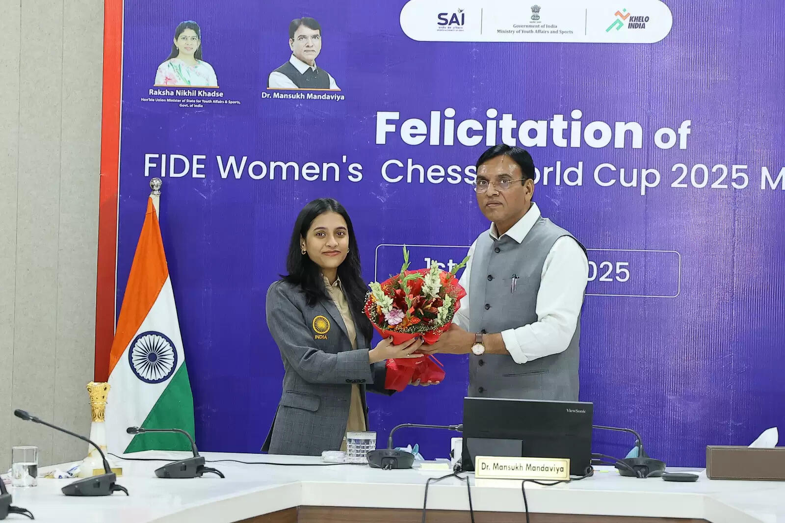केंद्रीय खेलमंत्री ने फिडे महिला विश्व कप के पदक विजेताओं को किया सम्मानित