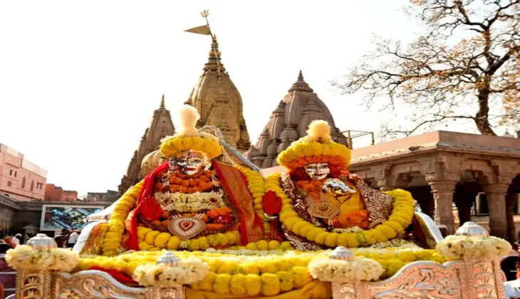 पालकी पर विराजमान श्री काशी विश्वनाथ और माता गौरा की चल रजत प्रतिमा प्रांगण में भ्रमण करते हुए मंदिर चौक पहुंची। चल रजत प्रतिमा के विराजमान होते ही भक्तों ने हल्दी, पुष्प, अबीर- गुलाल अर्पित कर मंगल गीत गए। भजनों एवं मंगल गीतों से श्री काशी विश्वनाथ धाम गुंजायमान हो गया। सायंकल फूलों से सजी पालकी पर श्री काशी विश्वनाथ महादेव और मां गौरा की चल रजत प्रतिमा मंदिर प्रांगण में भ्रमण करते हुए मंदिर चौक पहुंची। श्रद्धालुओं ने हर हर महादेव के जोरदार उद्घोष से पालकी यात्रा का स्वागत किया।