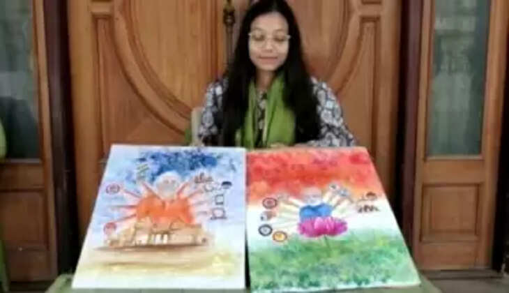 काशी में प्रधानमंत्री नरेंद्र मोदी और मुख्यमंत्री योगी आदित्यनाथ की 23 साल की एक ऐसी फैन है, जिसने महज तीन घंटे में पीएम व सीएम की पेंटिंग बना दी। केंद्र व प्रदेश सरकार की ओर से संचालित दस योजनाओं के बारे में भी जानकारी दी गई है। पेंटिंग के बैक ग्राउंड में तिरंगा और काशी विश्वनाथ धाम को दर्शाया गया है।