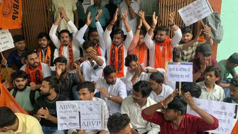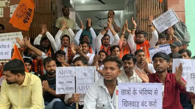 काशी विद्यापीठ में ABVP का धरना, परीक्षा एजेंसी पर छात्रों के भविष्य से खिलवाड़ का आरोप