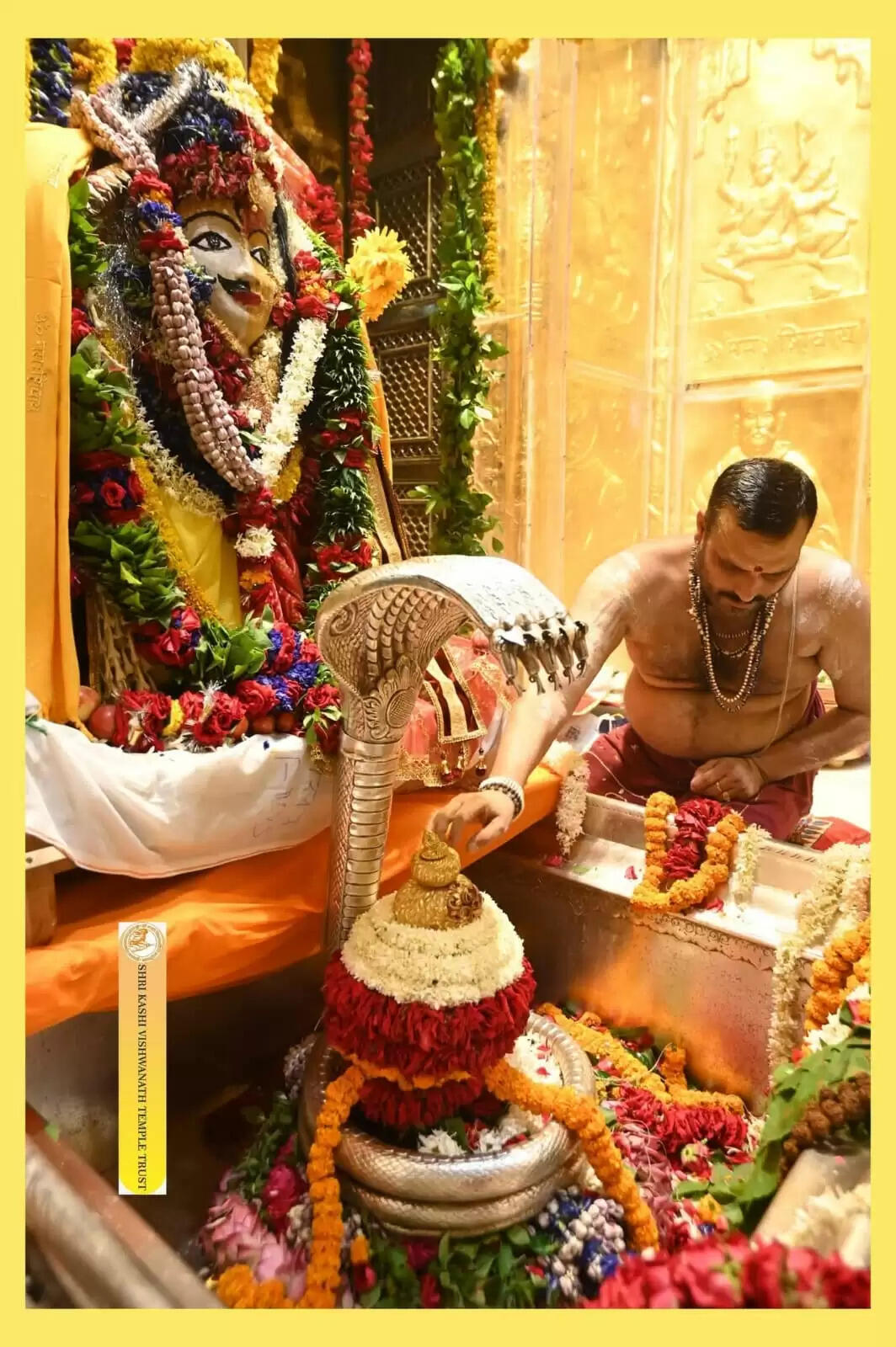 वाराणसी। पवित्र सावन माह के तीसरे सोमवार को काशी विश्वनाथ मंदिर में बाबा विश्वेश्वर का अर्धनारीश्वर स्वरूप में अलौकिक श्रृंगार किया गया, जिसके दर्शन पाकर लाखों भक्त भाव-विभोर हो उठे।