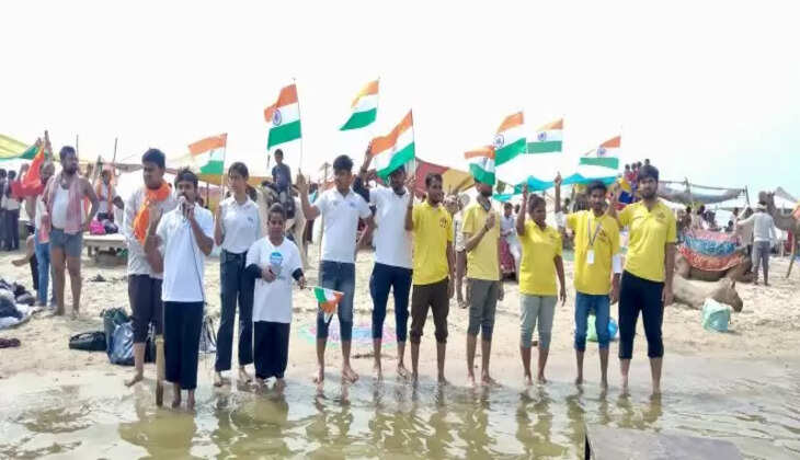 रंगोली कलाकार चांदनी विश्वकर्मा ने रंगोली बनाकर कार्यक्रम में रंग भरा, जबकि सभी उपस्थित लोगों ने तिरंगा हाथ में लेकर 'भारत माता की जय' और 'वंदे मातरम' के नारे लगाते हुए गंगा के प्रति अपनी श्रद्धा और देश के प्रति अपनी आस्था को दर्शाया।