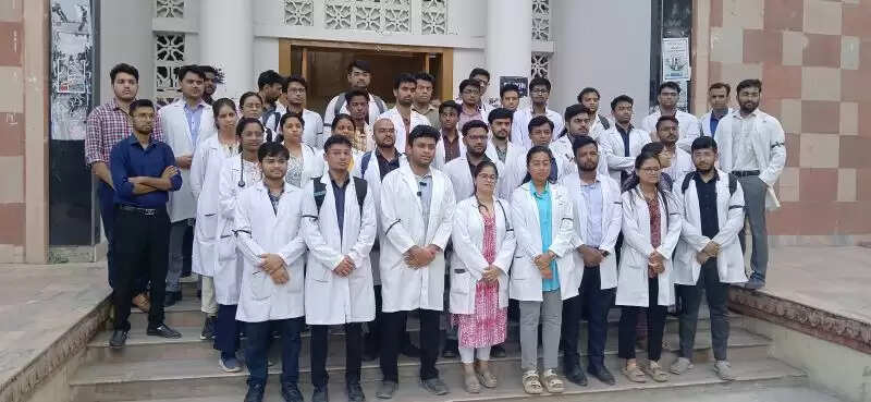 बाउंसर के दुर्व्यवहार के खिलाफ BHU के रेजीडेंट डॉक्टरों का प्रदर्शन, जांच और कार्रवाई की मांग