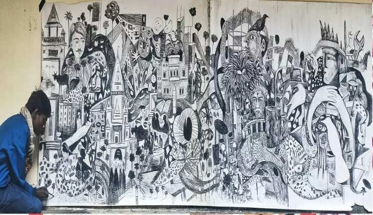 कचरे के पेपर पर बना दिया बीएचयू की सबसे बड़ी पेंटिंग, बीएफए के छात्र की अद्भुत कारीगरी