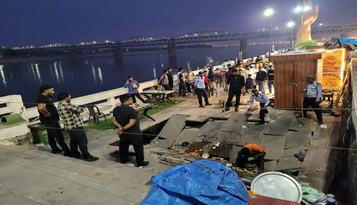 बड़ी खबर: नमो घाट पर धंस गई जमीन, मची अफरातफरी, कई घायल, मैनेजर ने लगाया निर्माण कार्य में घोटाले का आरोप