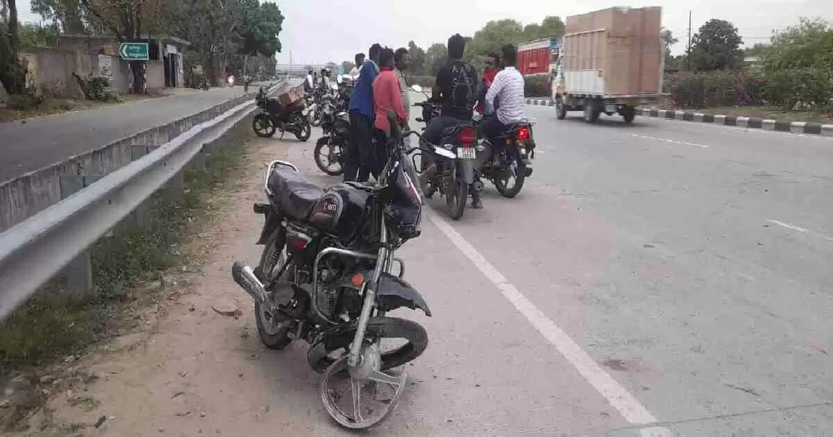 मिर्जामुराद में बाइक सवार को टक्कर मारते भाग निकली कार, हालत गंभीर
