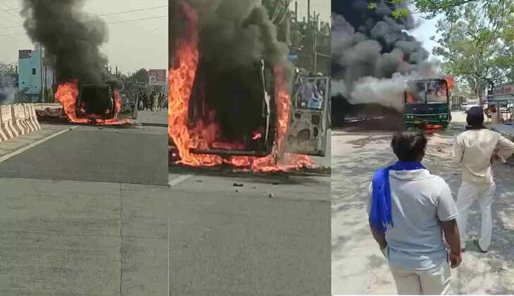 हालांकि सावधानी बरतते हुए दूसरे लेन से लोग आते जाते रहे। कुछ देर के बाद पुलिस और फायर ब्रिगेड के कर्मचारी पहुंचे। आग पर काबू पाने का प्रयास किया जा रहा था। वाहन में आग कैसे लगी इसका पता नही चल सका है।