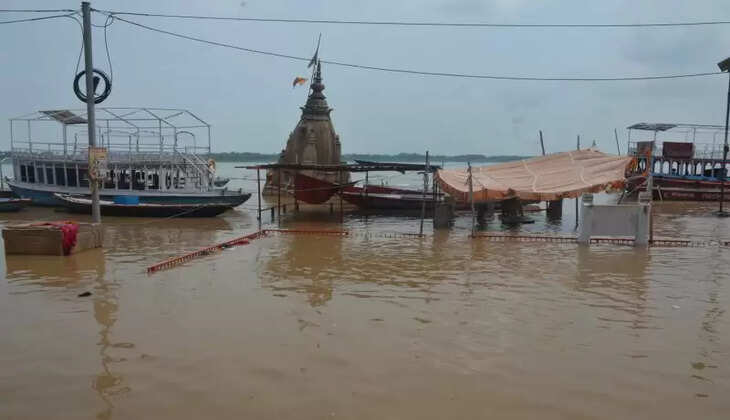 वाराणसी में उफान पर गंगा, सुबह-ए-बनारस का मंच डूबा, शीतला मंदिर तक पहुंचा पानी