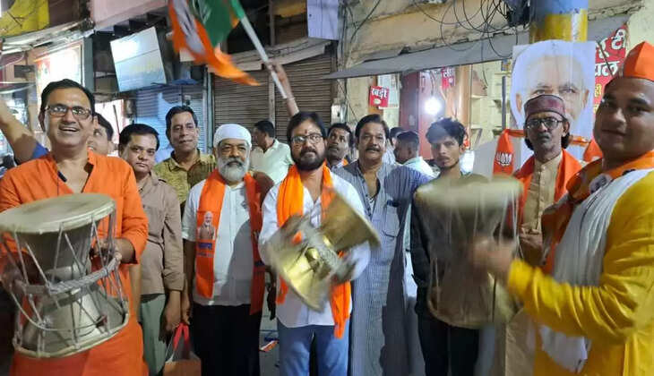 वाराणसी। नरेन्द्र मोदी के तीसरी बार प्रधानमंत्री पद की शपथ लेने के बाद देशभर में उनके समर्थकों में उत्साह है। वहीं प्रधानमंत्री के संसदीय क्षेत्र वाराणसी में भी पार्टी कार्यकर्ताओं में उत्साह चरम पर है। रविवार रात कार्यकर्ताओं ने डमंरू, ढोल नगाड़ों और मिठाइयों के साथ अपनी खुशी का इजहार किया।