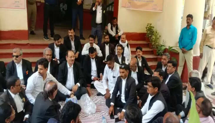अधिवक्ता सुरक्षा कानून और कैशलेस इलाज की मांग को लेकर वाराणसी में वकील लामबंद, दिया धरना