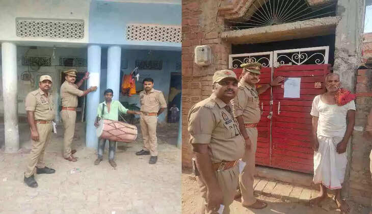 कोर्ट से फरार घोषित दो आरोपितों के घर मंडुवाडीह पुलिस ने बजवाई डुगडुगी