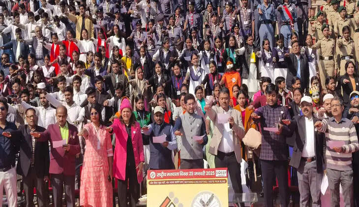 नमो घाट पर मनाया गया राष्ट्रीय मतदाता दिवस, "वोट जैसा कुछ नहीं" थीम पर किया गया जागरूक, जिलाधिकारी ने फर्स्ट टाइम वोटर्स को बांटा आईकार्ड