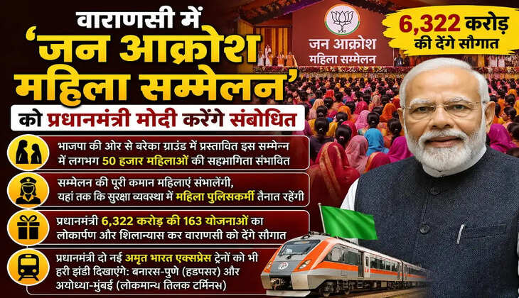 वाराणसी। शिव की नगरी काशी में मंगलवार (28 अप्रैल) को मातृ शक्तियों का सम्मेलन होगा। प्रधानमंत्री नरेंद्र मोदी आज दो दिवसीय दौरे पर अपने संसदीय क्षेत्र काशी आ रहे हैं। ‘जन-आक्रोश महिला सम्मेलन’ को देश के प्रधानमंत्री व काशी के सांसद नरेंद्र मोदी संबोधित करेंगे। भाजपा की ओर से बरेका ग्राउंड में प्रस्तावित इस सम्मेलन में लगभग 50 हजार महिलाओं की सहभागिता संभावित है। इस आयोजन की विशेषता यह है कि इसकी पूरी कमान महिलाएं संभालेंगी। यहां तक कि सुरक्षा व्यवस्था में महिला पुलिसकर्मी तैनात रहेंगी। सम्मेलन में महिला सम्मान, सुरक्षा, स्वावलंबन और समान अवसर जैसे मुद्दों पर संवाद होगा। साथ ही प्रधानमंत्री वाराणसी को 6,322 करोड़ की 163 योजनाओं का लोकार्पण और शिलान्यास कर सौगात देंगे। साथ ही प्रधानमंत्री दो नई अमृत भारत एक्सप्रेस ट्रेनों को भी हरी झंडी दिखाएंगे। बुनियादी सुविधाओं से जुड़ी ये योजनाएं पूर्वांचल के विकास को रफ्तार देगी। पीएम मोदी का पीएम 28 अप्रैल को दोपहर बाद वाराणसी के लाल बहादुर शास्त्री अंतर्राष्ट्रीय हवाई अड्डे पहुंचने के बाद हेलीकॉप्टर से बरेका जनसभा स्थल करीब 5 बजे पहुंचेंगे। प्रधानमंत्री की अगवानी राज्यपाल आनंदीबेन पटेल, मुख्यमंत्री योगी आदित्यनाथ , डिप्टी सीएम केशव प्रसाद मौर्य व बृजेश पाठक करेंगे। स्वागत करने में कई मंत्री तथा बीजेपी के वरिष्ठ पदाधिकारी भी हो सकते हैं। भाजपा के राष्ट्रीय अध्यक्ष नितिन नवीन के भी उपस्थित रहने की सम्भावना है। इसके अलावा भाजपा के प्रदेश अध्यक्ष पंकज चौधरी, संगठन के अन्य पदाधिकारी और कई मंत्री भी इस अवसर पर उपस्थित रहेंगे। पीएम 29 अप्रैल को सुबह 8:30 बीएलडब्ल्यू से श्री काशी विश्वनाथ मंदिर में दर्शन-पूजन करने जाएंगे । प्रधानमंत्री जनप्रतिनिधियों और संगठन के लोगों के साथ बैठक भी कर सकते है ।