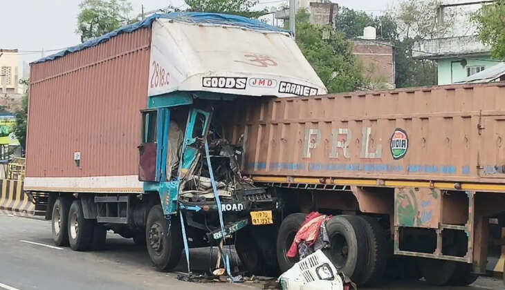 राजातालाब ओवरब्रिज : चलती ट्रक में पीछे से घुसी दूसरी ट्रक