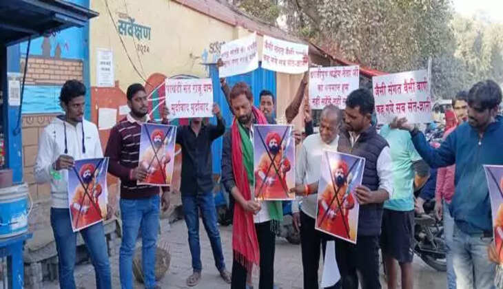 हनुमानगढ़ी के पुजारी राजू दास के बयान पर सपा कार्यकर्ताओं का विरोध, पोस्टर को पैर से कूचला, अजय फौजी ने की फांसी की मांग