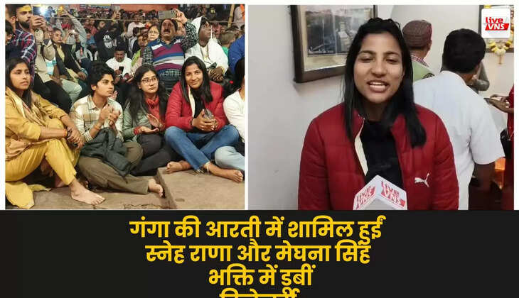 दशाश्वमेध घाट पर मां गंगा की आरती में शामिल हुईं स्नेह राणा और मेघना सिंह, भक्ति में डूबीं क्रिकेटर्स