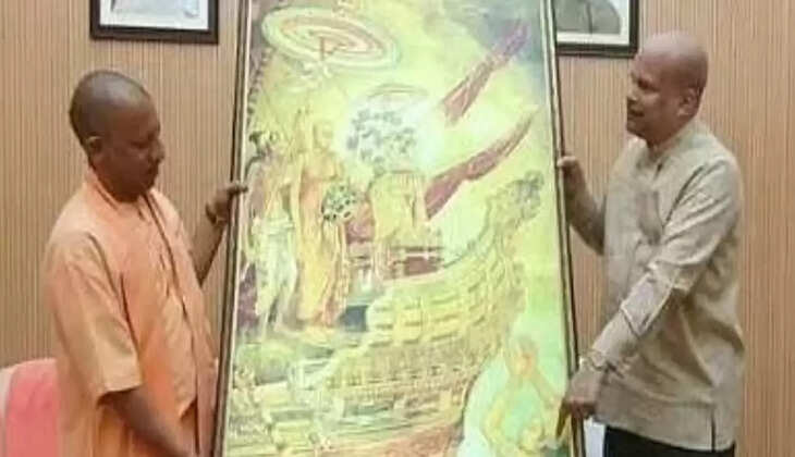 श्रीलंका के उच्चायुक्त ने सीएम योगी को भेंट की अशोक वाटिका शिला, बाबतपुर एयरपोर्ट पर लगेगी यह खास पेंटिंग