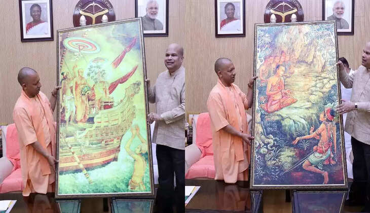 वाराणसी एयरपोर्ट पर लगाने के लिए दो तस्वीरें श्रीलंका के उच्चायुक्त ने CM योगी को किया भेंट