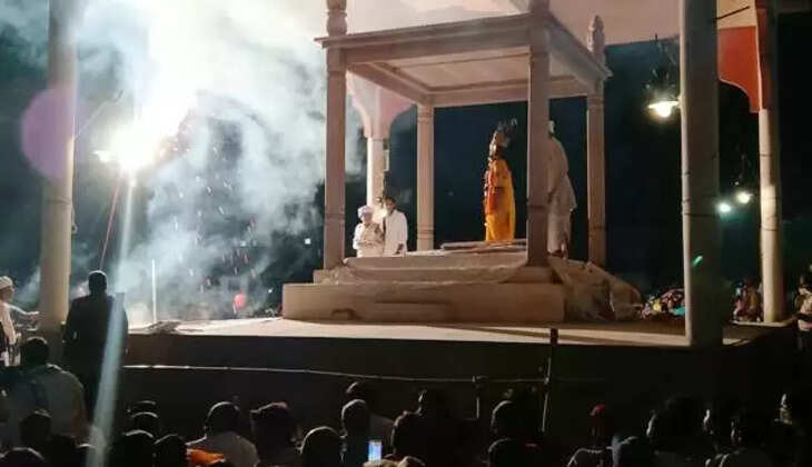 वाराणसी। रामनगर की रामलीला के पांचवें दिन राजा जनक के आमंत्रण पर सीता के स्वयंवर में पहुंचे भगवान राम ने जैसे ही शिव धनुष को तोड़ा तीनों लोक भयंकर ध्वनि से गूंज उठे। लेत चढ़ावत खैंचत गाढ़ें, काहुं न लखा देख सबु ठाढ़ें। तेहि छन राम मध्य धनु तोरा, भरे भुवन धुनि घोर कठोरा...अर्थात लेते, चढ़ाते और जोर से खींचते हुए किसी ने नहीं लखा (अर्थात ये तीनों काम इतनी फुर्ती से हुए कि धनुष को कब उठाया, कब चढ़ाया और कब खींचा, इसका किसी को पता नहीं लगा), सबने श्री रामजी को (धनुष खींचे) खड़े देखा। उसी क्षण श्री रामजी ने धनुष को बीच से तोड़ डाला। भयंकर कठोर ध्वनि से लोक भर गए।