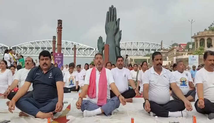 काशी में 11वें अंतरराष्ट्रीय योग दिवस का भव्य आयोजन, सपा सांसद ने नमो घाट पर लोगों संग किया योग, बताई महत्ता