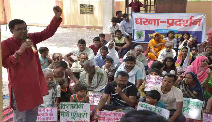 मोहनसराय ट्रांसपोर्ट योजना से प्रभावित किसानों पर लाठीचार्ज के खिलाफ पीएम के आदर्श गांव में धरना