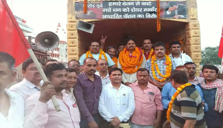 पेंशन रथ के स्वागत में उमड़े हजारों कर्मचारी, लगाये नारे- हर हाल में लेकर रहेंगे पुरानी पेंशन