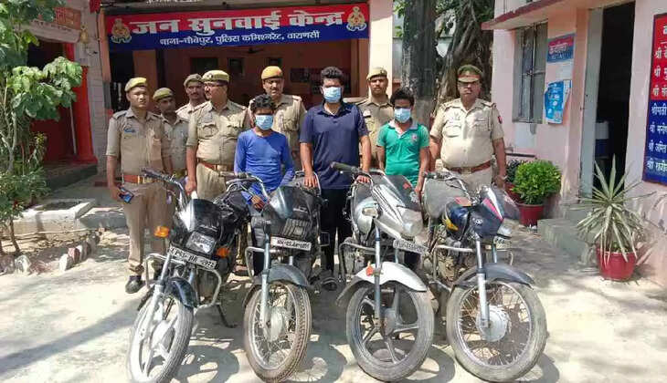 वाराणसी। चौबेपुर पुलिस ने शुक्रवार को तीन शातिर वाहन चोरों को गिरफ्तार किया। पुलिस ने उनके कब्जे और निशानदेही पर चोरी की चार मोटरसाइकिलें बरामद की हैं। पुलिस ने मुखबिर की सूचना पर इन्हें मढ़नी महासीपुर से पकड़ा।
