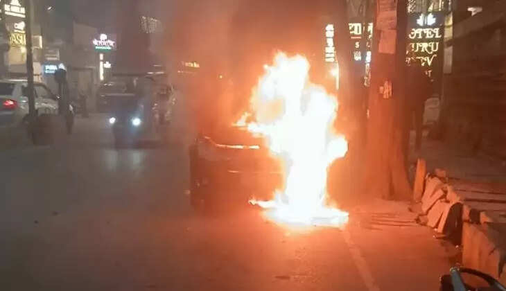 वाराणसी : अचानक धू-धूकर जलने लगी रथयात्रा चौराहे पर खड़ी कार, मची अफरातफरी