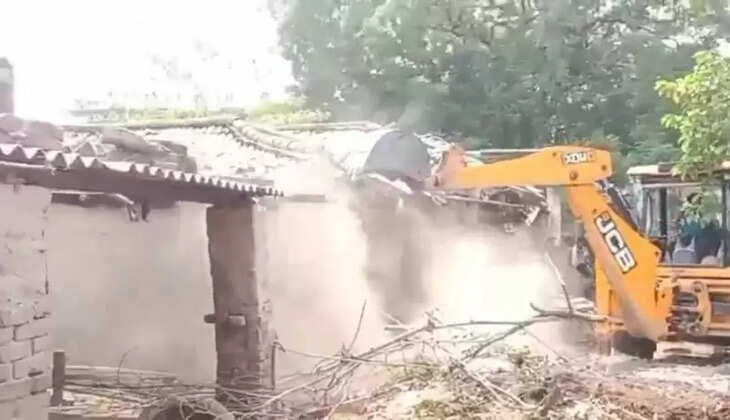वाराणसी : बंजर भूमि पर बने कच्चे मकान पर प्रशासन ने चलवाया बुलडोजर, मचा हड़कंप