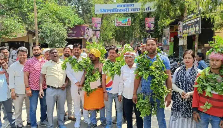 वाराणसी : पत्तियों की माला पहन भाजपा नेता ने किया अनोखा प्रदर्शन, गोंड समाज को जाति प्रमाण पत्र देने की उठाई मांग