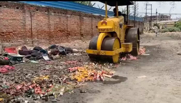 वाराणसी : शराब की बोतलों पर चला रोलर, जीआरपी ने नष्ट कराई हजारों बोतल अंग्रेजी शराब