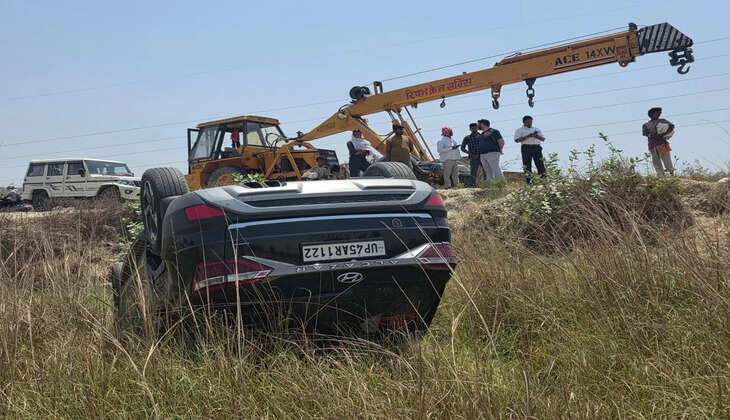 वाराणसी : हाईवे पर कार-बाइक में टक्कर, हादसे का बाद पलटी कार, बाइक सवार दंपती और बच्चा घायल