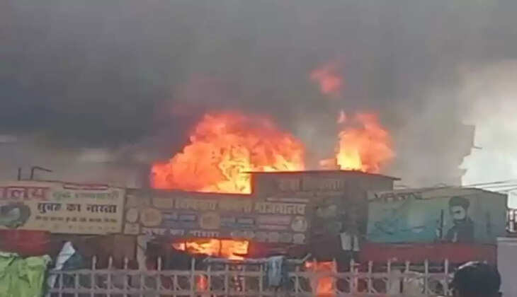 वाराणसी : नाइट मार्केट में सिलेंडर विस्फोट से लगी आग, आधा दर्जन दुकानें जलकर खाक