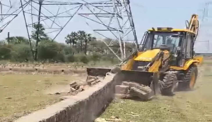 वाराणसी : अवैध निर्माण पर गरजा विकास प्राधिकरण का बुलडोजर, 12 बीघा प्लाटिंग कराया ध्वस्त