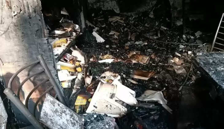 वाराणसी : शॉर्ट सर्किट से साड़ी शोरूम में लगी भीषण आग, लाखों का नुकसान