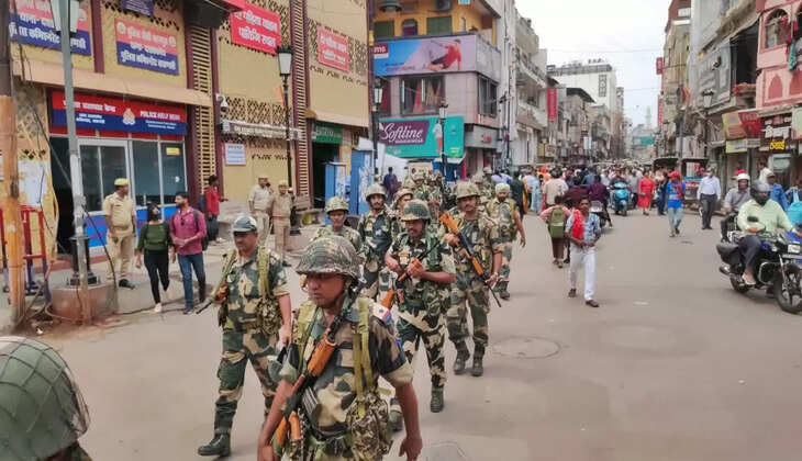 तस्वीरों में देखिए BSF के जवानों के साथ वाराणसी पुलिस का फ्लैग मार्च...