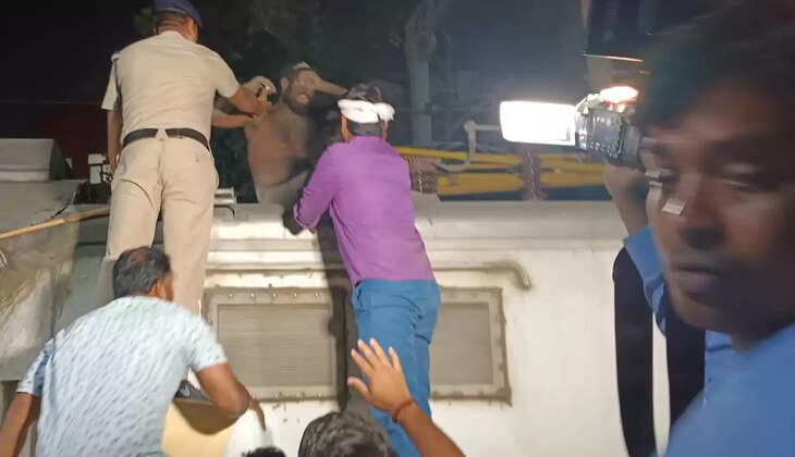 वाराणसी : नग्न अवस्था में ट्रेन के इंजन के ऊपर बैठा युवक, मचा हड़कंप