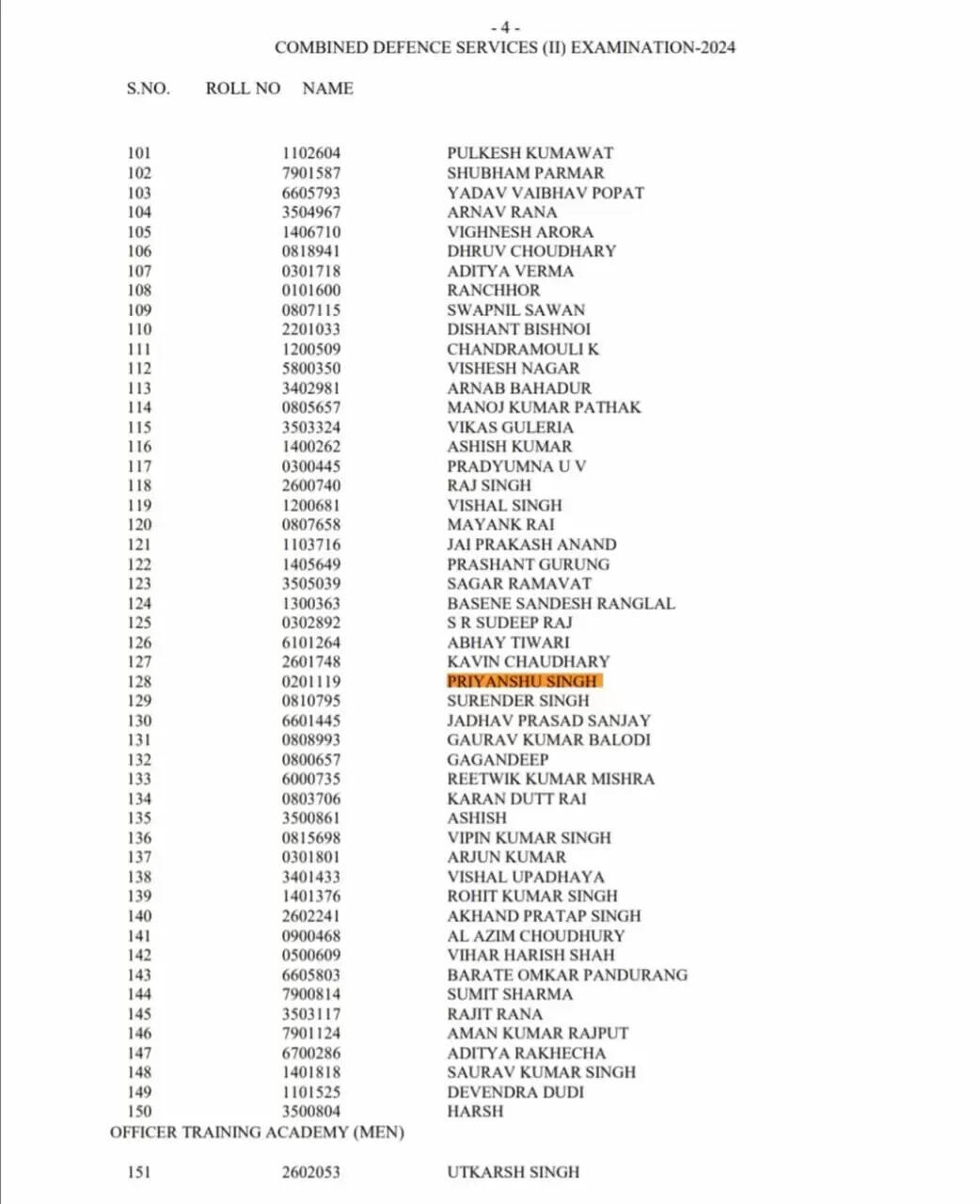 वाराणसी। वाराणसी के युवा प्रियांशु सिंह ने यूपीएससी सीडीएस 2024 (संयुक्त रक्षा सेवाएं) परीक्षा में शानदार प्रदर्शन करते हुए ऑल इंडिया रैंक (AIR) 128 हासिल की है। इस उपलब्धि के साथ प्रियांशु अब ऑफिसर्स ट्रेनिंग एकेडमी (OTA), चेन्नई में प्रशिक्षण प्राप्त करेंगे और भारतीय सेना में लेफ्टिनेंट के रूप में कमीशन होंगे।