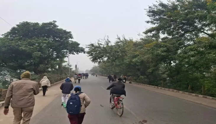 राजघाट पुल पर वाहनों का आवागमन बंद, कड़ाके की ठंड में पैदल जाते दिखे लोग, रूट डायवर्जन लागू